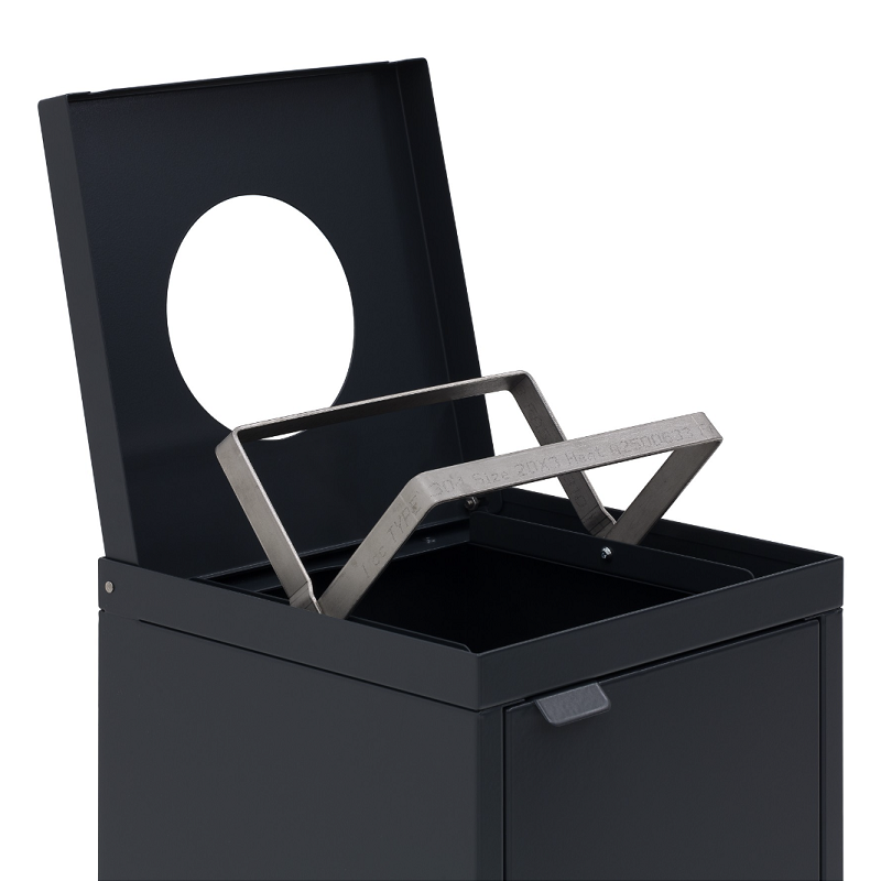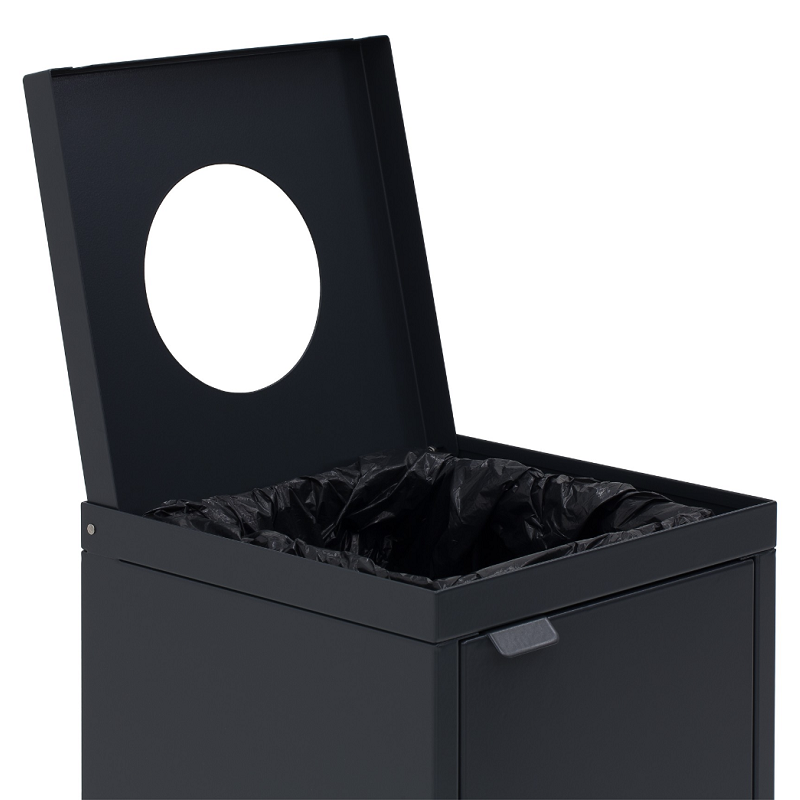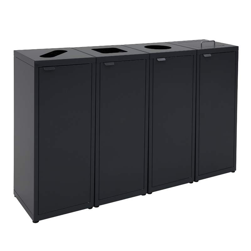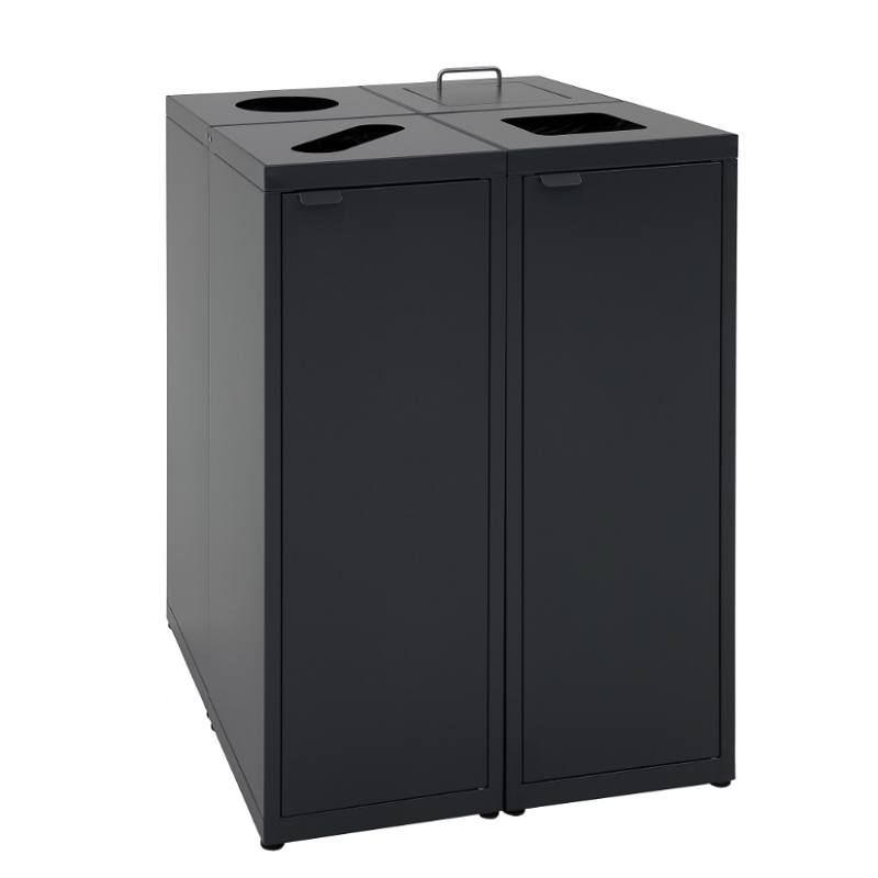 Collab er i realiteten en kildesorteringsstasjon satt sammen av de fire avfallsbeholderne i serien Nasjonalen. Arranger dem i rekke, eller i en firkant. Legg til og ta fra beholdere etter ønske. Hver av de fire beholderne har ulikt utformet innkast tilpasset sin avfallskategori. Levers med frontmonterte dører med magnetlås eller låsbar lås. Beholderne har også justerbare føtter og innvendige sekkeholdere.