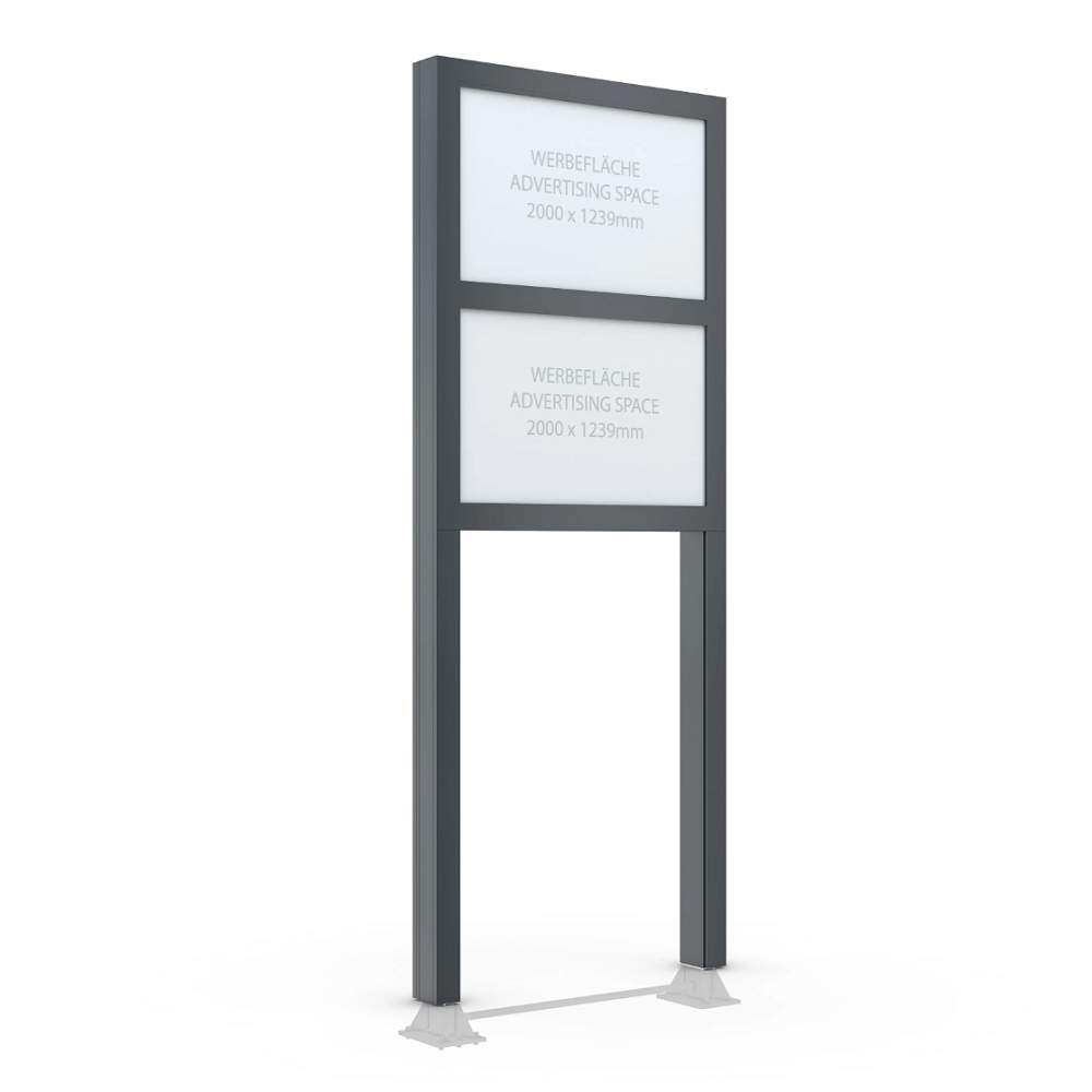 Gateguide IV er en dobbeltsidig elegant LED-belyst pylon som gir et godt førsteinntrykk av virksomheten din både på dagtid og etter mørkets frembrudd. Er det behov for endringer bytter man bare ut skiltplatene. Den solide konstruksjonen sikrer lang levetid. Produktet overflatemonteres til betong eller et betongelement. Vi kan levere med betongfundament og skilt med firmanavn ferdig påmontert om ønskelig.
