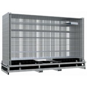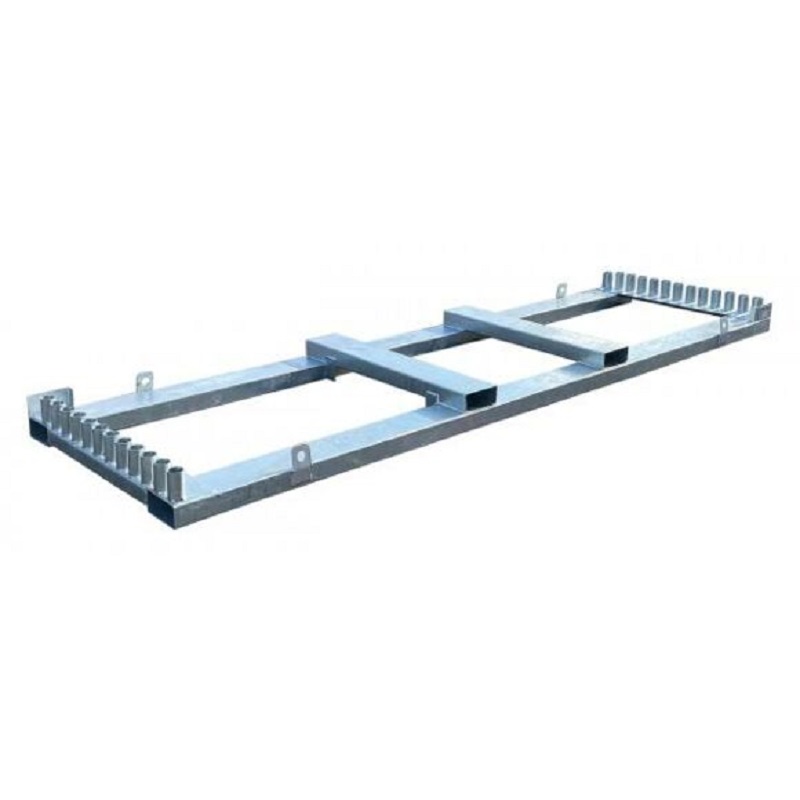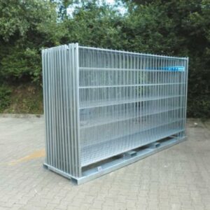 Gjerdestativ I kommer i to versjoner med kapasitet på henholdsvis 25 og 29 mobile gjerder. Stativet er utstyrt med løfteøyer for kran og lommer for pallegafler som muliggjør flytting fra begge sider.