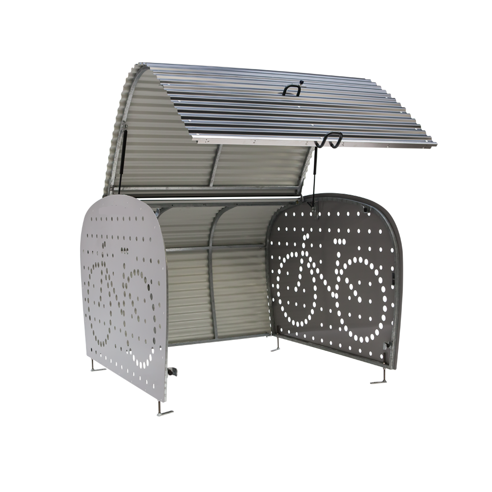 Veloboxx 5.0 er på mange måter unik på markedet i dag med sin mulighet for bruk av elektronisk lås og kapasitet til å parkere sykler også med barnesete og frontmonterte kurver.